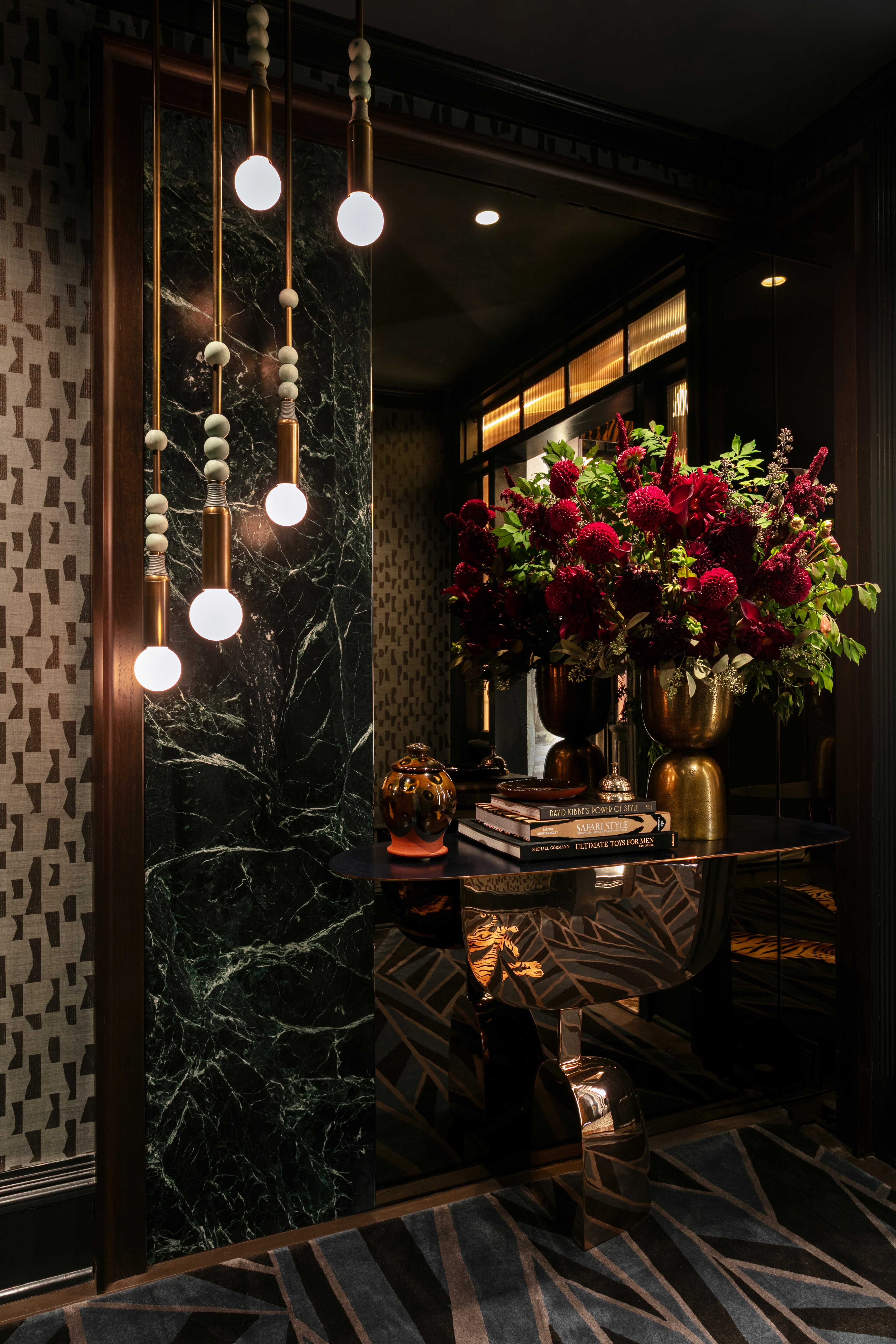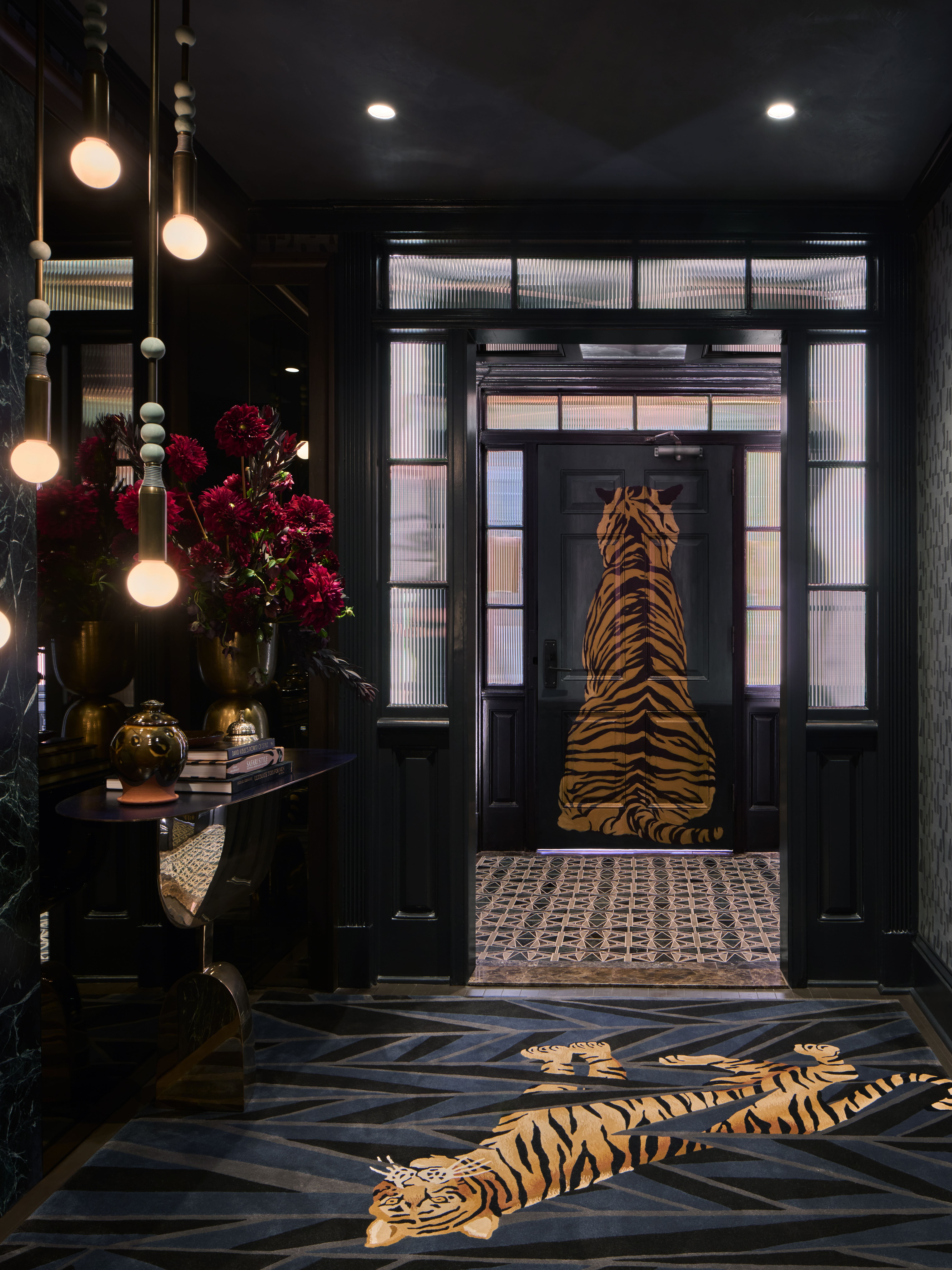 "A Midnight Check-In" creates an evocative world where the tiger's protective spirit leads you into a dreamscape toward new beginnings. Just as the Kips Bay Boys & Girls Club reminds us, if you can dream it, you can make it real. We are honored to showcase A Midnight Check-In for the 50th anniversary of the Kips Bay Decorator Show House with the support of the our sponsors and partners: Abask, Ace Glass, All Install LLC, Apollo Electric, Apparatus, Arte, Artisitc Tile, Baldwin Hardware, Benjamin Moore, Color Atelier, EmTek, Eteline, FauxCoos Studio, Holly Hunt, Jennifer Hansen Rolli, Lancaster Custom Cabinets & Closets Inc., Light Lab Lighting, Made Goods, Maison Gerard, Marras Curtis Lighting Design, Pace Gallery, Phillip Jeffries, Ralph Pucci, Serrano Good Touch, Shakuff, Stone Tech Fabrication, Taconic Builders, Tai Ping Carpets, The Art of Tint, The Finishing Touch, The ROMO Group, and Verellen.